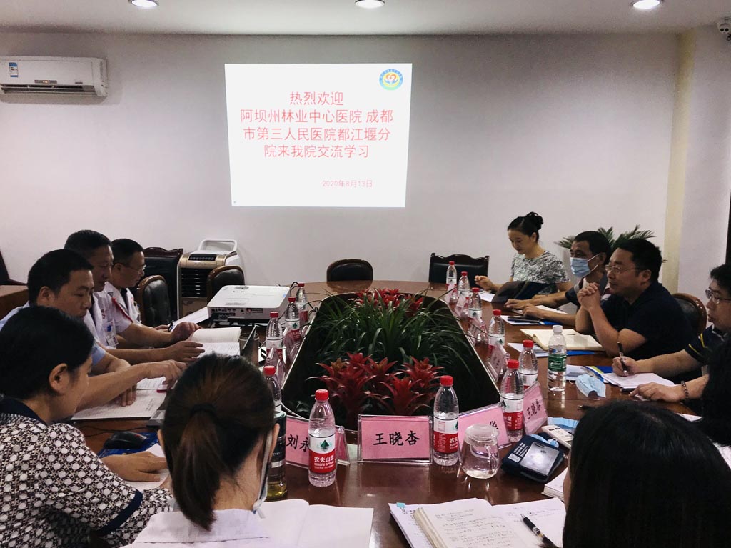 8月13日,阿坝州林业中心医院 成都市第三人民医院都江堰分院来我院交流学习,医院部分在家院领导及相关职能部门负责人参加交流。